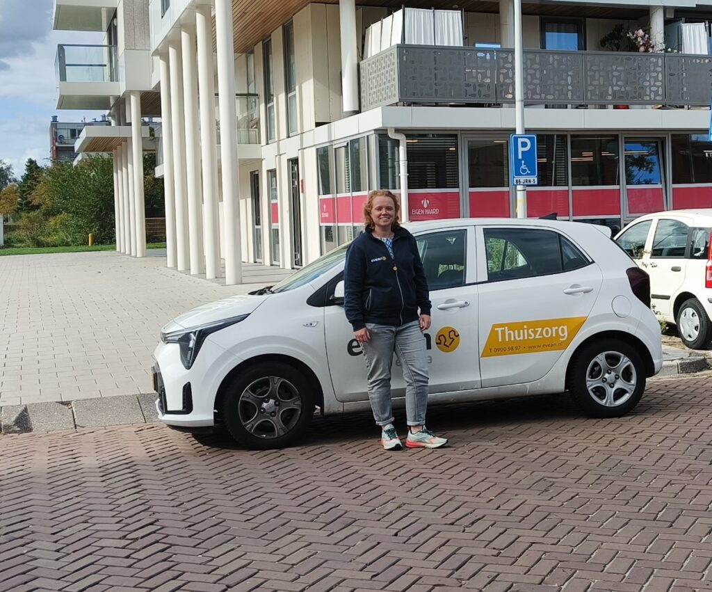Maddie werkt inmiddels zo’n drie jaar als wijkverpleegkundige EGT / VPT bij Evean. Ze begon in de Zaanstreek en werkt sinds anderhalf jaar in Amsterdam.
